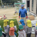 体験農園を実施しました。橋永農園さんに来ていただき、栗のお話を聞いた後、園庭に蒔いた栗を火バサミを使ってみんなで拾いました。