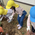 アサガオのタネ植えをしました。きく組もも組ばら組のみんなでアサガオのタネを植え付けました。